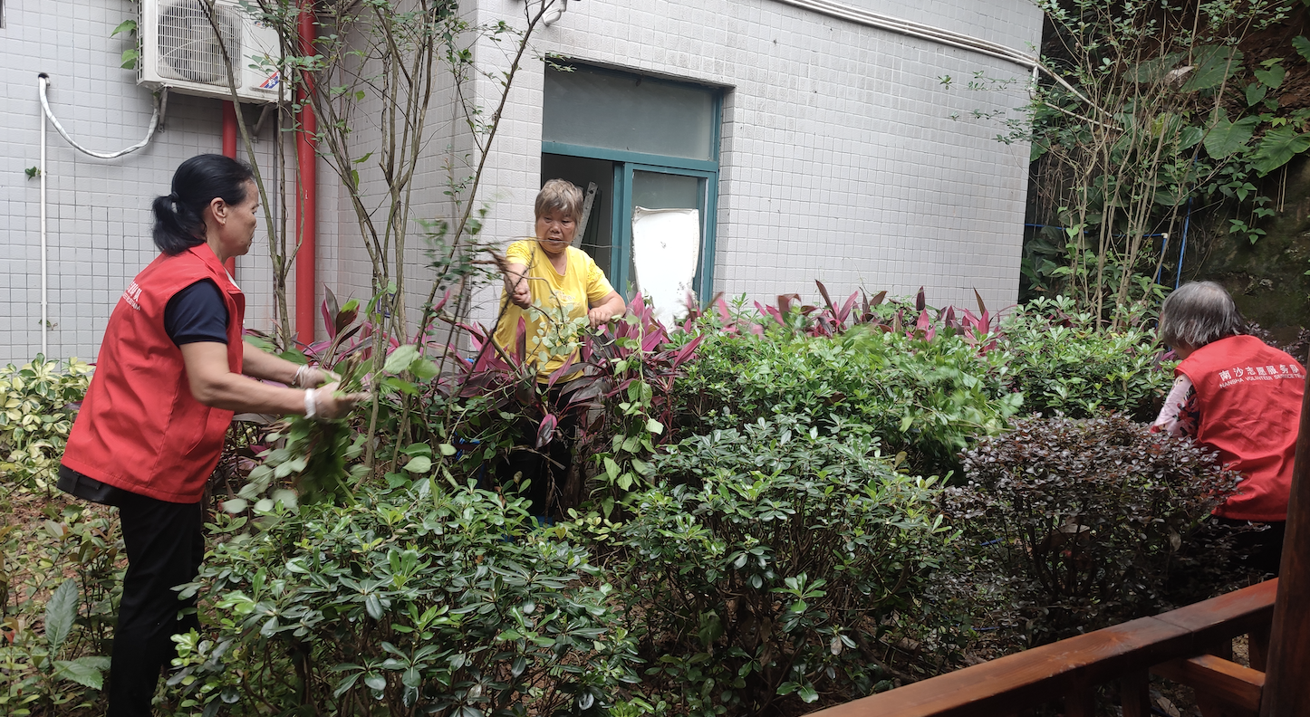 午后时分,志愿者们纷纷来到龙穴街道的“街坊之家”,他们听从工作人员的指导,手持工具,立刻投入到德馨园的清理工作中。现场气氛活跃,志愿者们各司其职,一些人专注于拔除杂草,让公园绿地焕发新颜;另一些人则精心修剪杂枝,让树木更加美观,同时也避免了野生藤蔓对花草的侵扰。还有一部分志愿者在清理德馨园内的生活垃圾,他们一丝不苟地将纸屑、烟头、易拉罐等垃圾杂物逐一清除。尽管雨后天气闷热,花草间虫蚁繁多,但志愿者们的热情并未受到丝毫影响。他们汗流浃背,却始终保持着旺盛的干劲,为德馨园的环境改善贡献着自己的力量。
