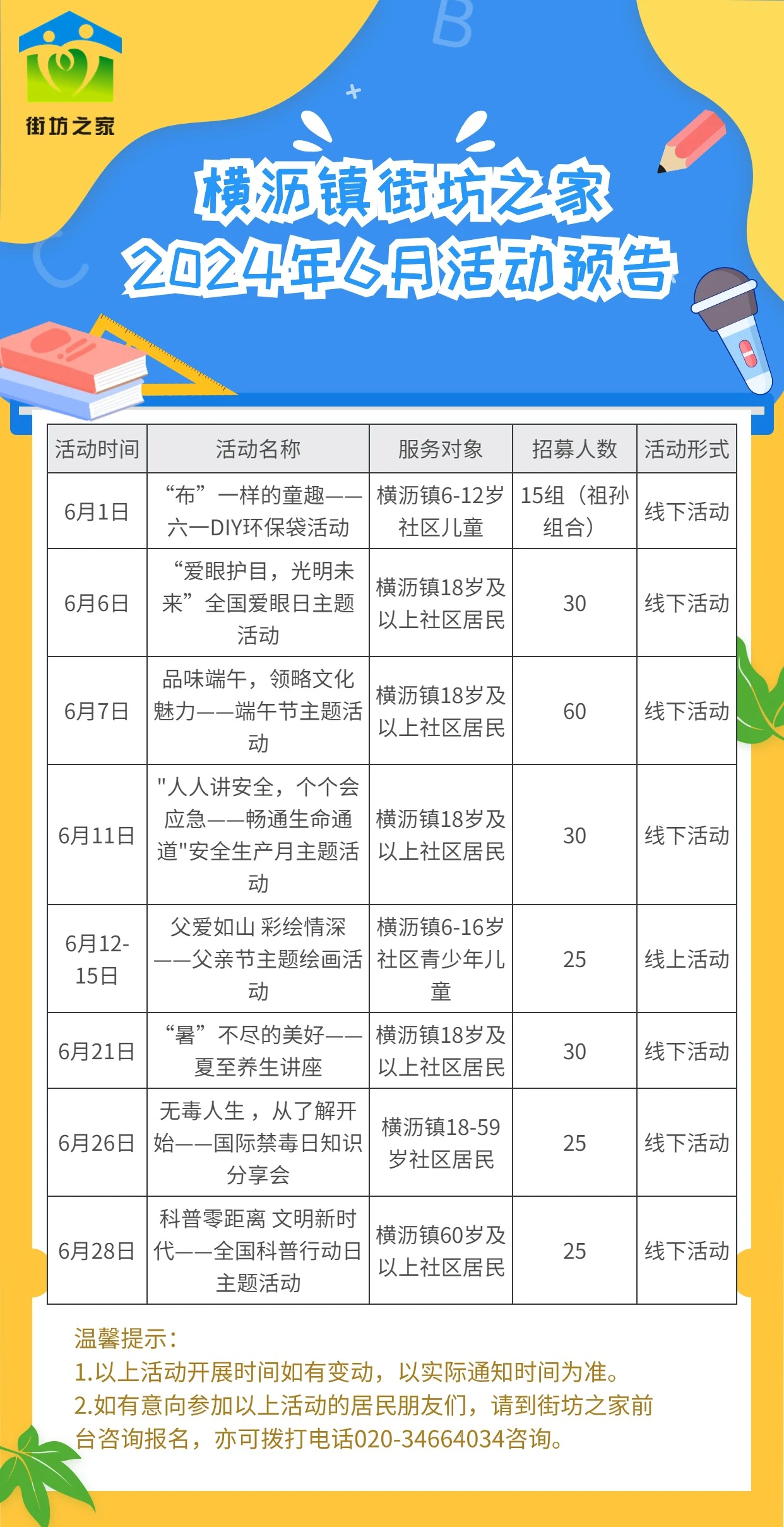 2024年6月横沥镇综合养老服务中心(颐康中心)活动预告