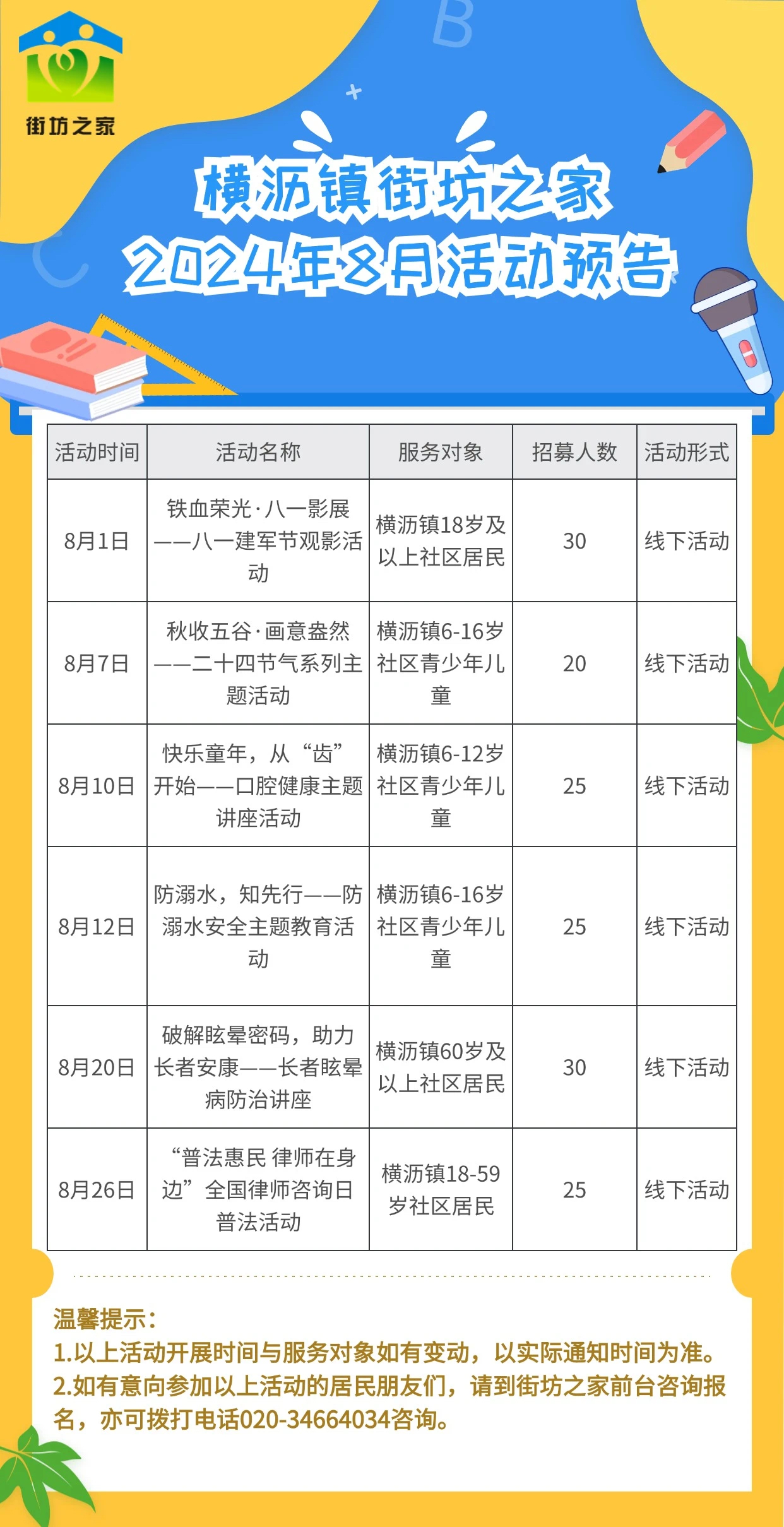 横沥镇街坊之家2024年8月活动预告
