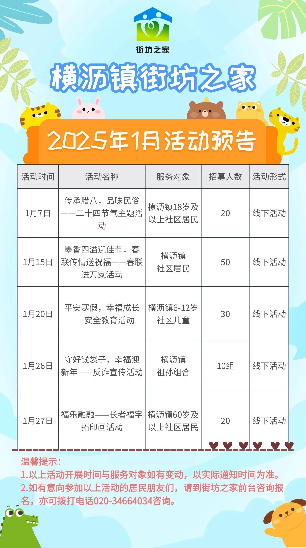 横沥镇街坊之家2025年1月活动预告