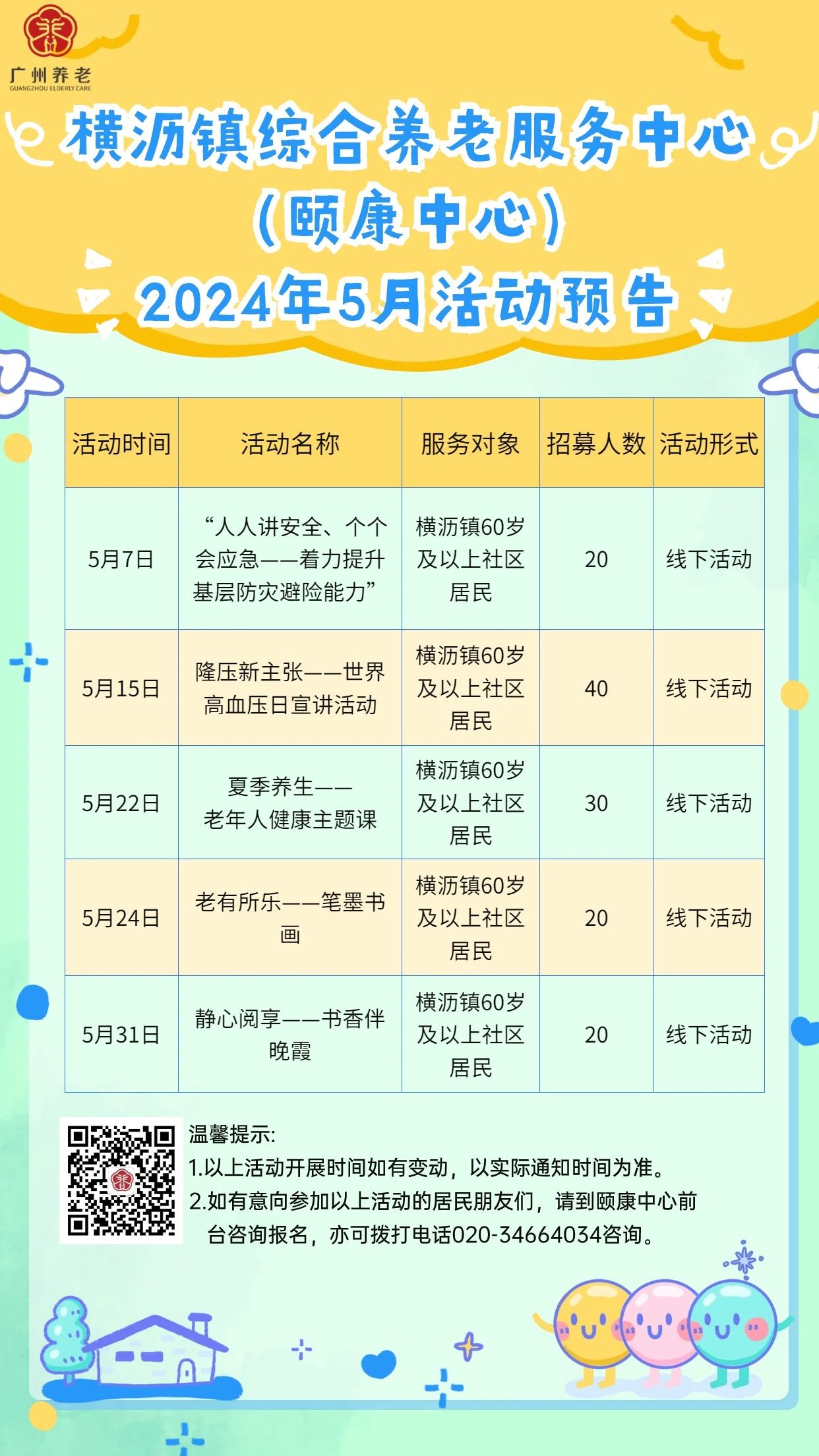 横沥镇综合养老服务中心(颐康中心)2024年5月活动预告