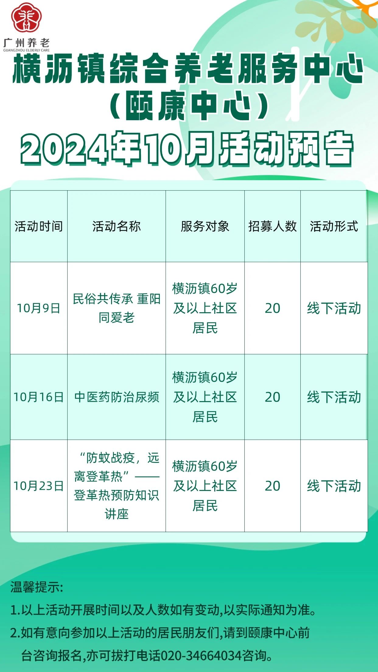 横沥镇综合养老服务中心(颐康中心)2024年10月活动预告