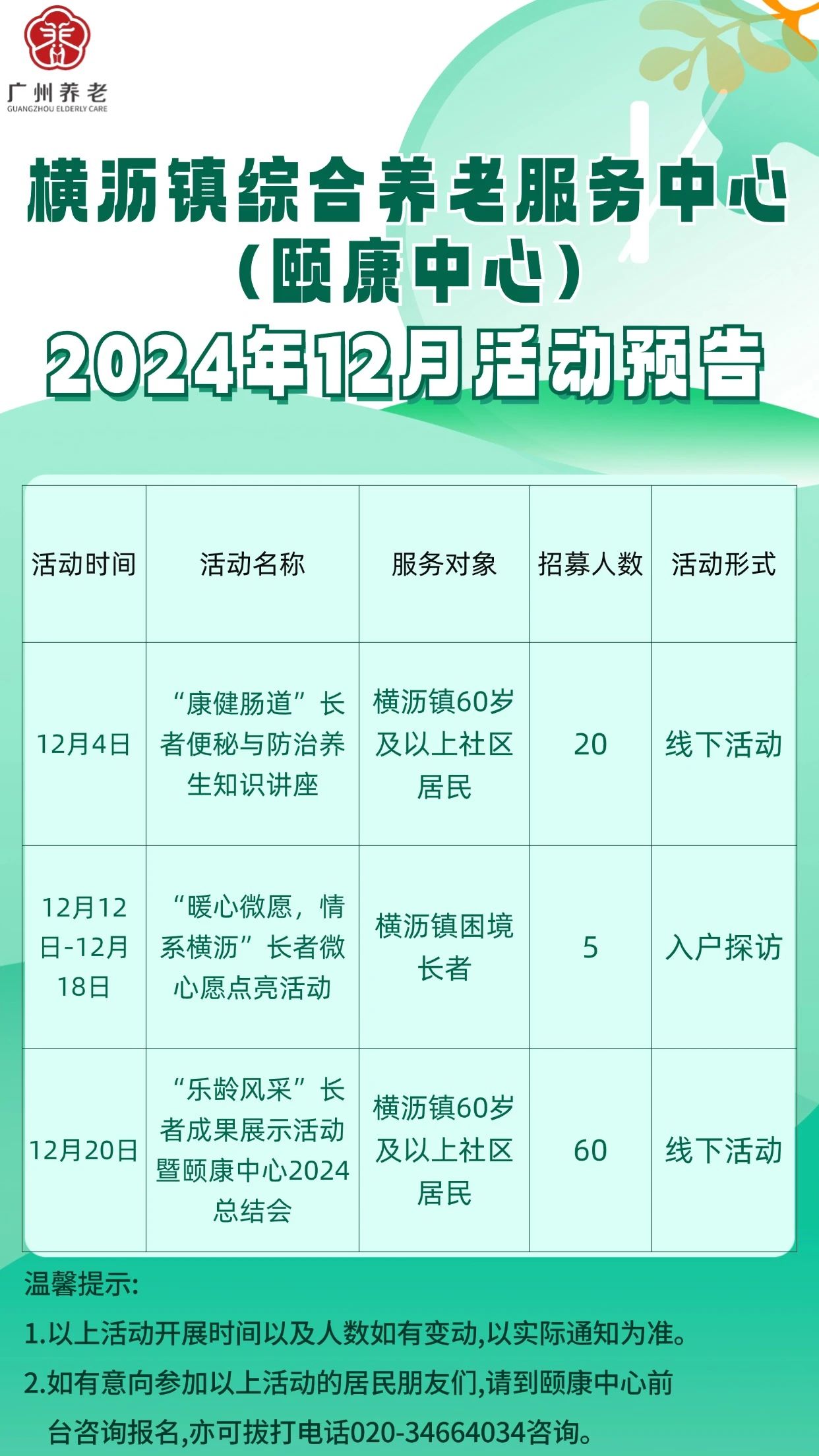 横沥镇综合养老服务中心(颐康中心)2024年12月活动预告