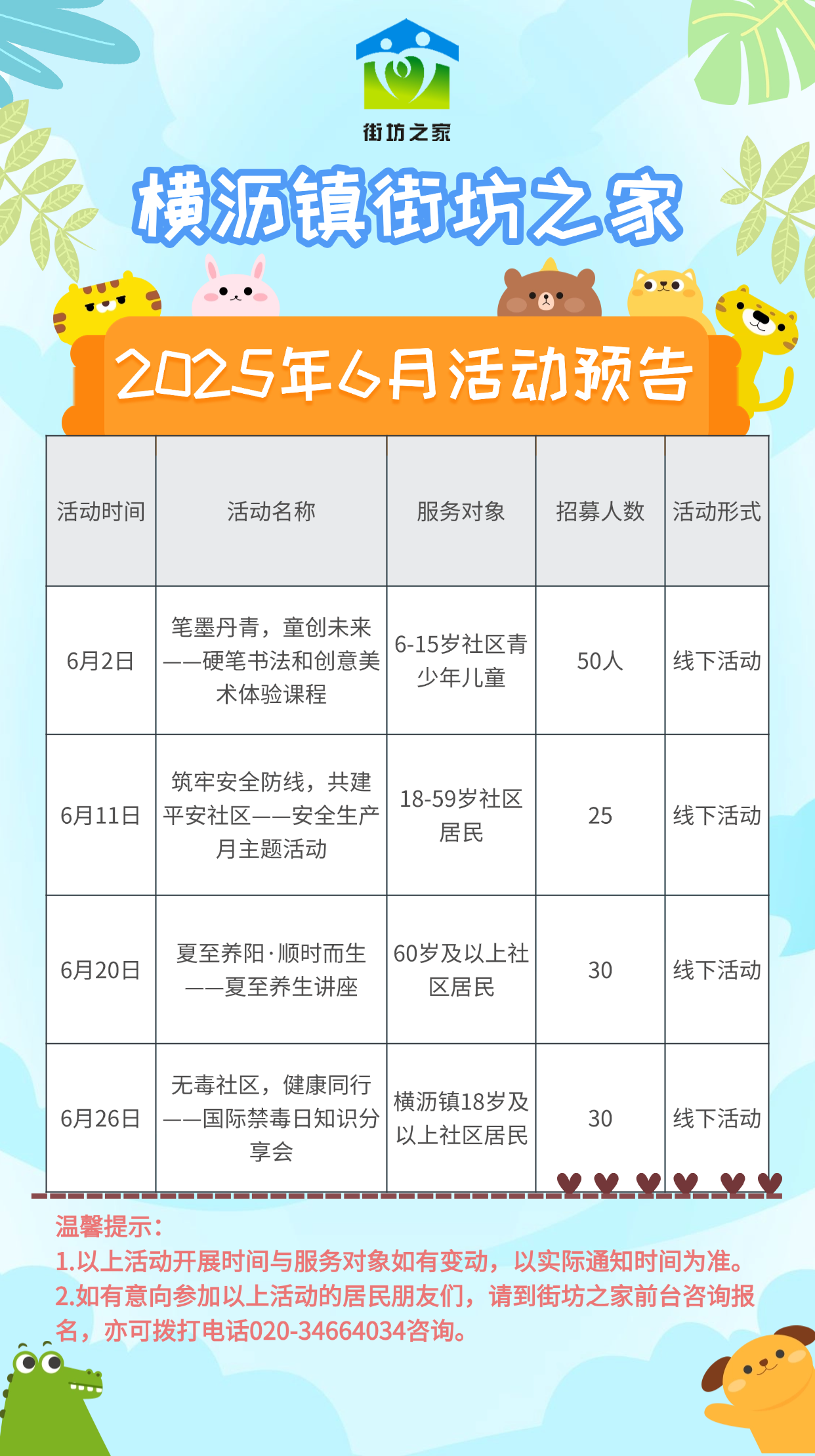 横沥镇街坊之家2025年6月活动预告