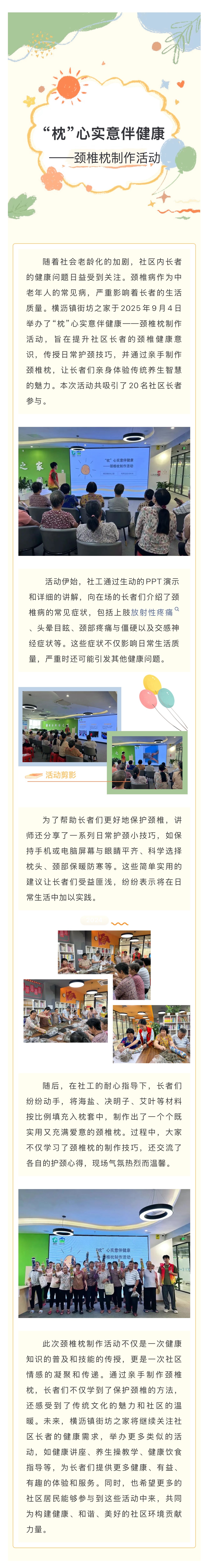 【活动回顾】“枕”心实意伴健康——颈椎枕制作活动